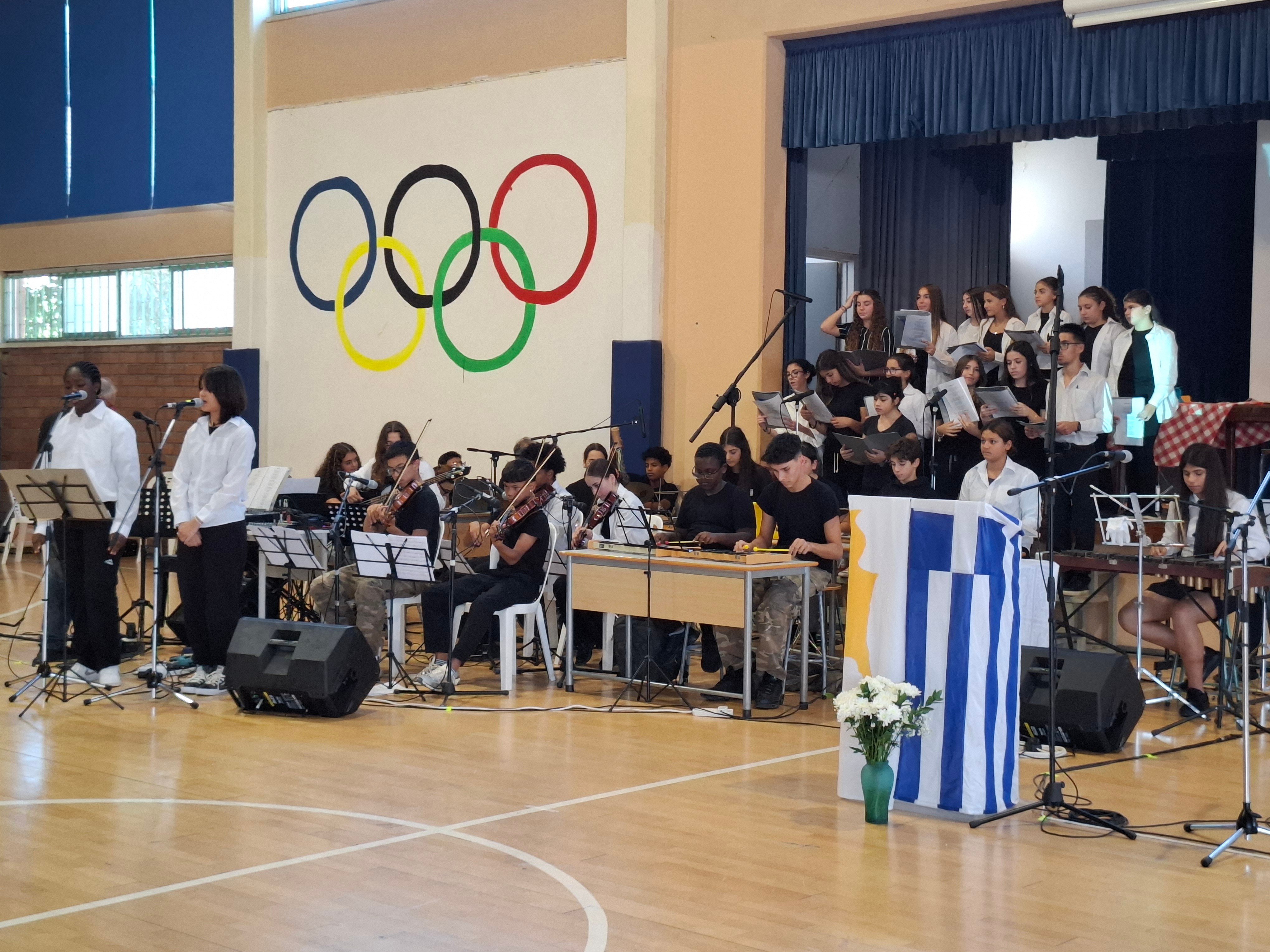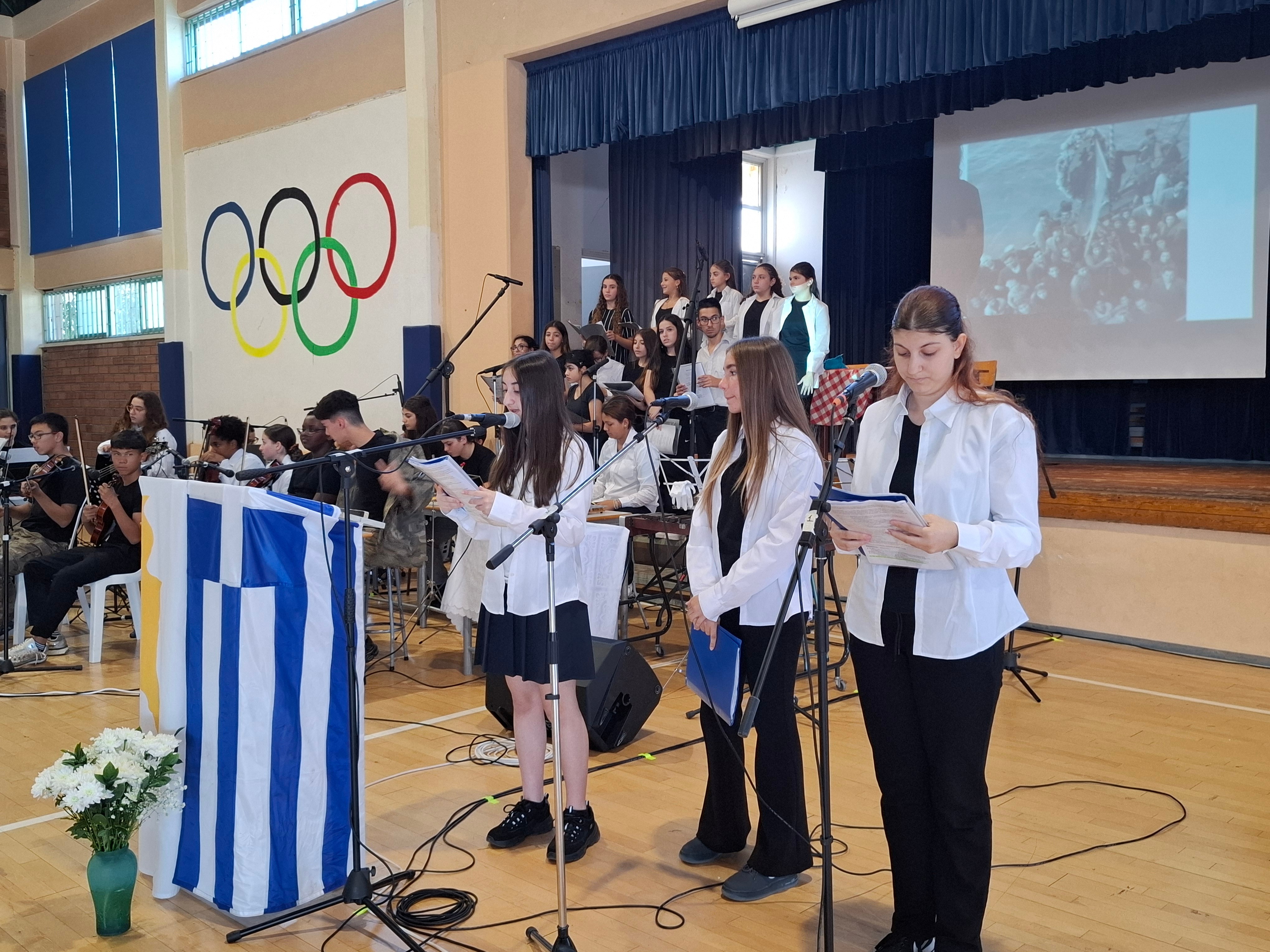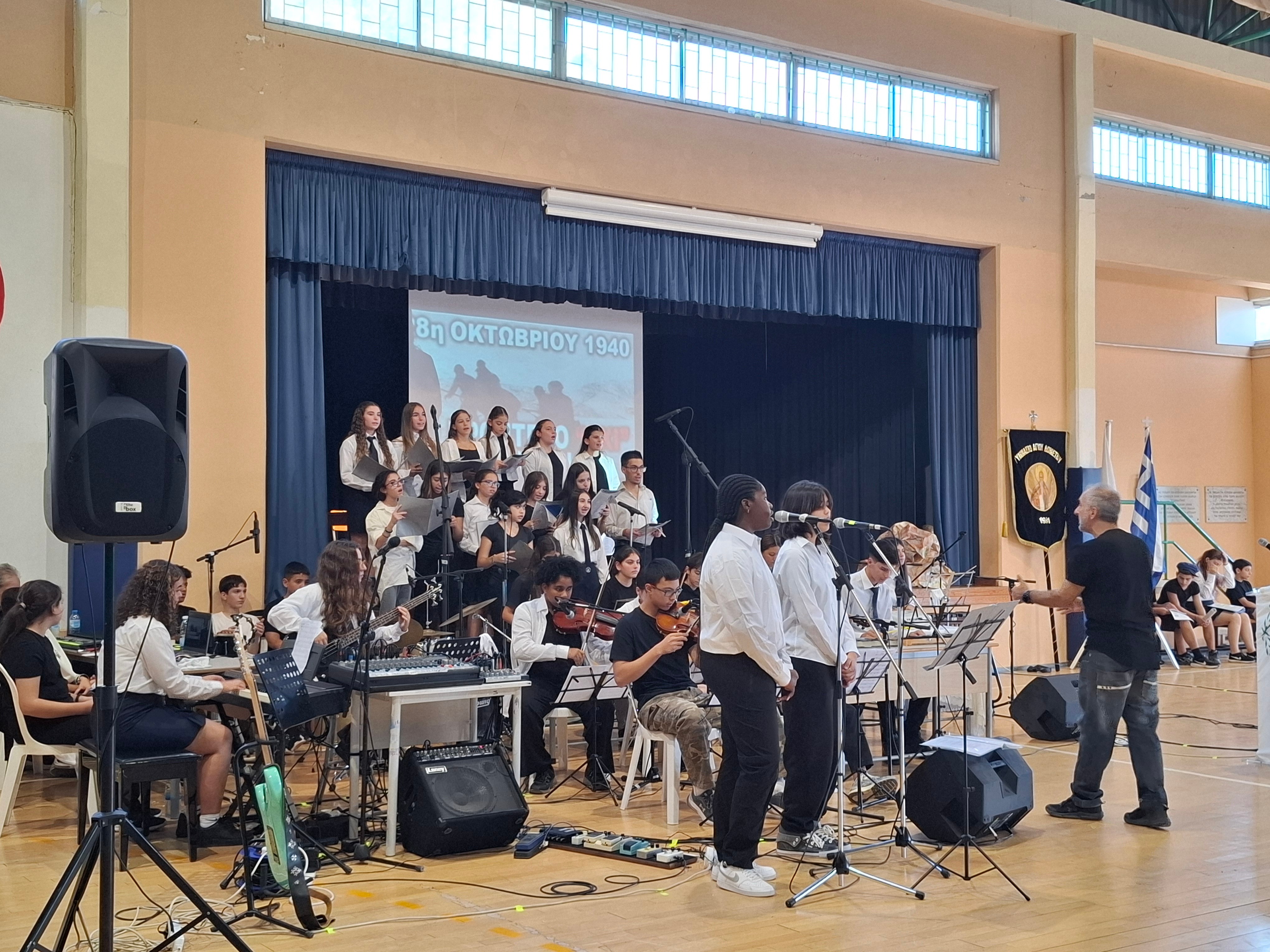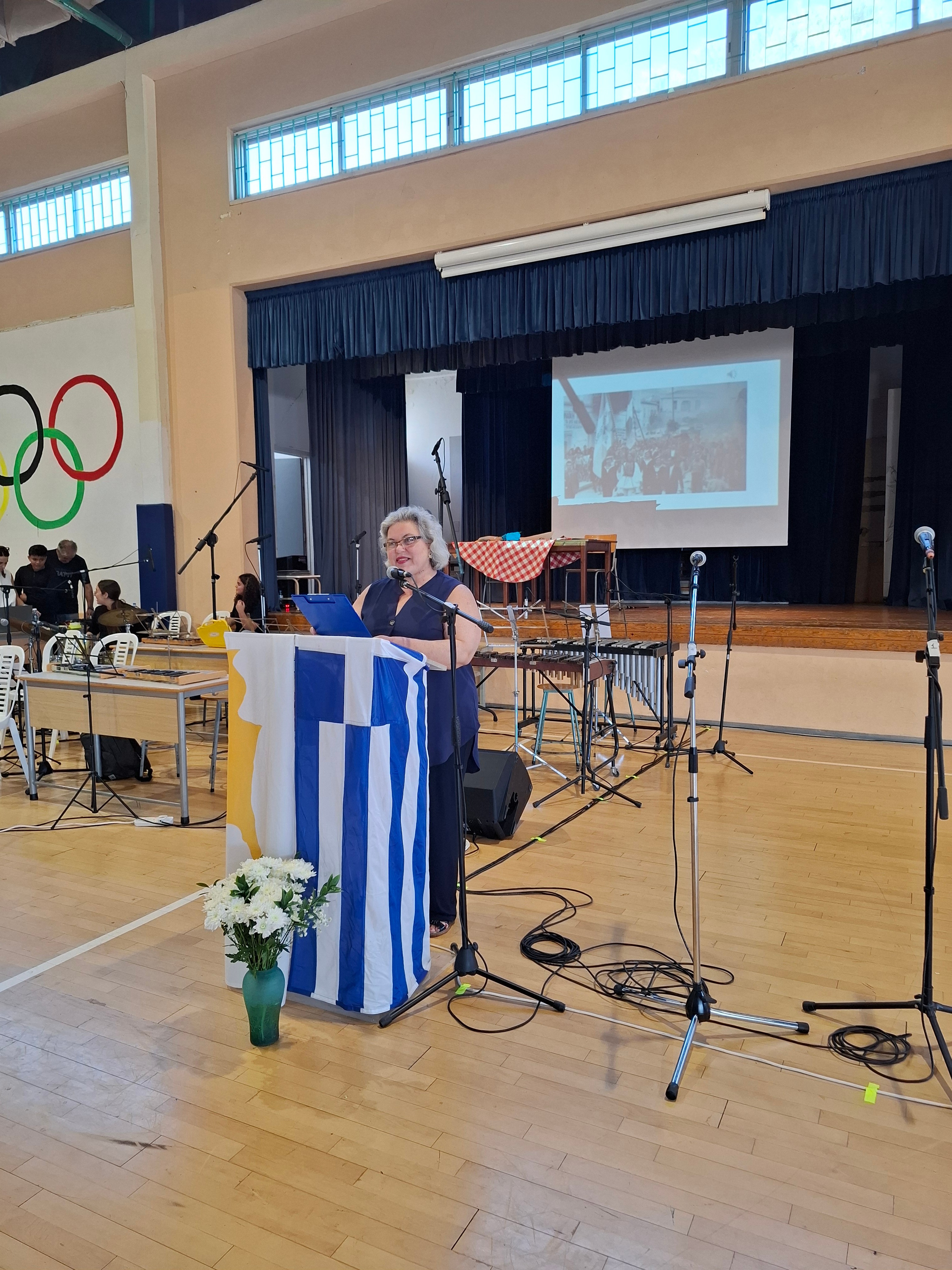 Ο ελληνικός λαός αγωνίστηκε γενναία για την ειρήνη, τη δημοκρατία και την ανεξαρτησία των λαών. Ας μας οδηγήσει το παράδειγμα αυτό ως μια φωτεινή ηλιαχτίδα στο σκοτάδι, στον αγώνα κατά της βίας του πολέμου και της προσβολής της ανθρώπινης αξιοπρέπειας. Για να περάσει το μήνυμα αυτό συνεργάστηκαν με ενθουσιασμό μαθητές και μαθήτριες, παρουσιάζοντας ελληνικούς χορούς, τραγούδια, ποιήματα και σκηνές από τον πόλεμο και τον αγώνα των Ελλήνων.
