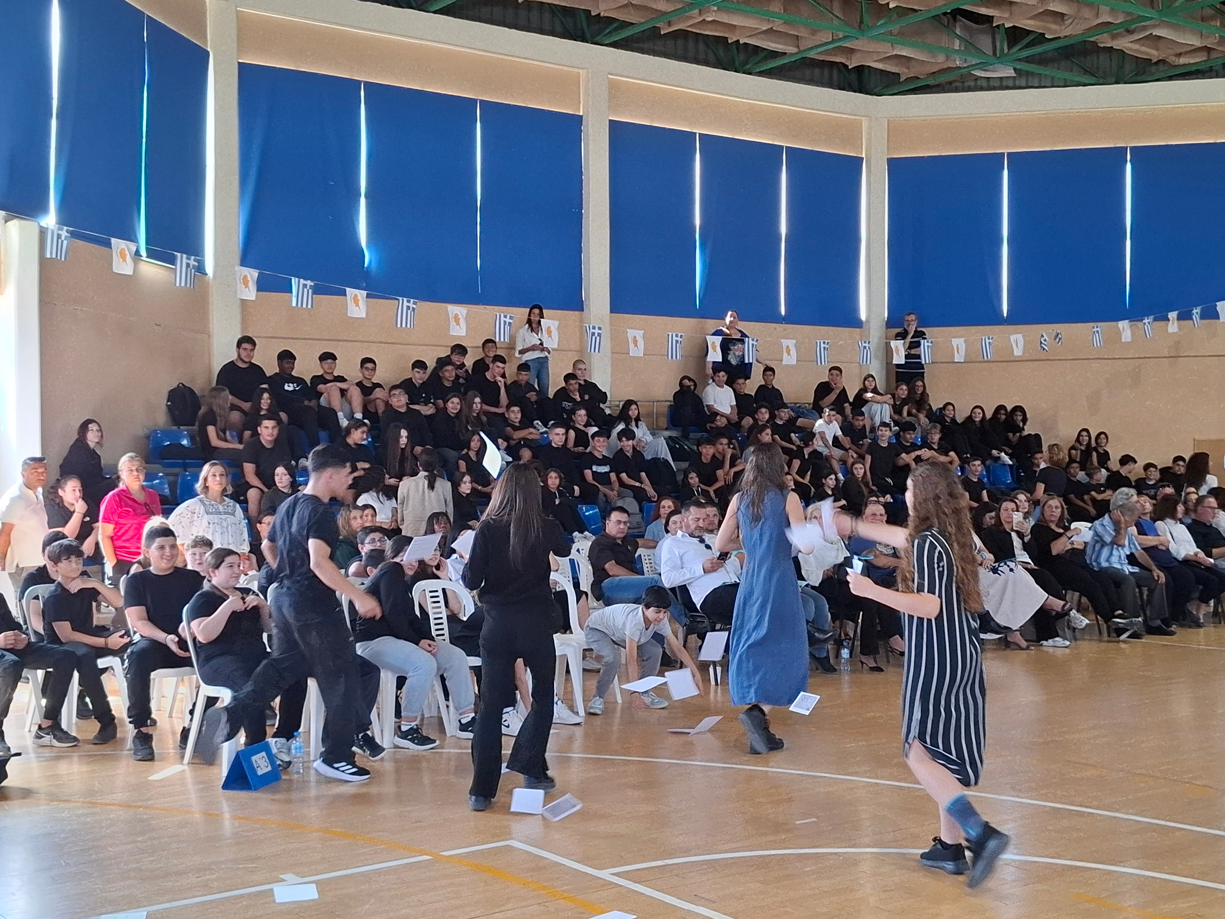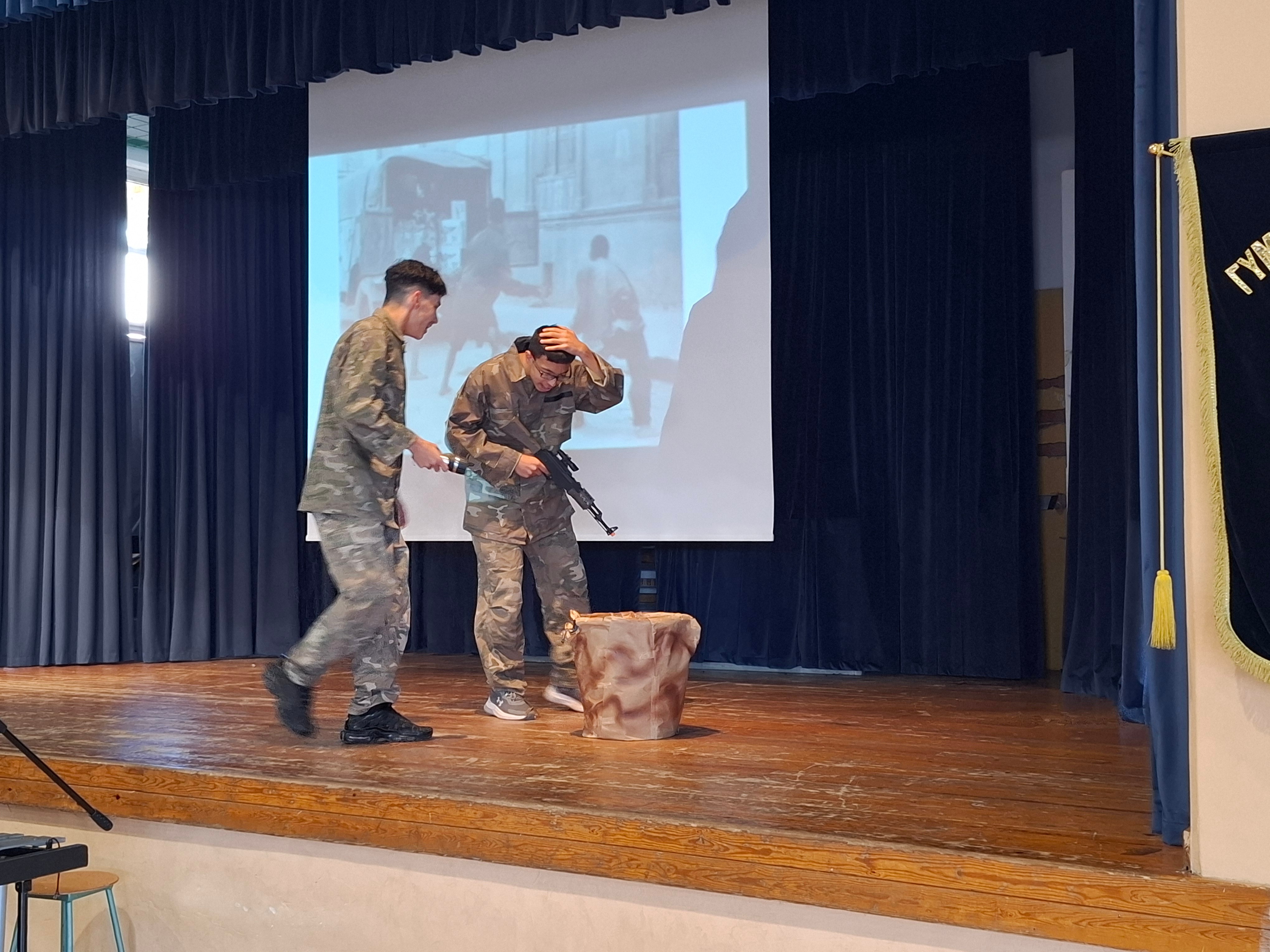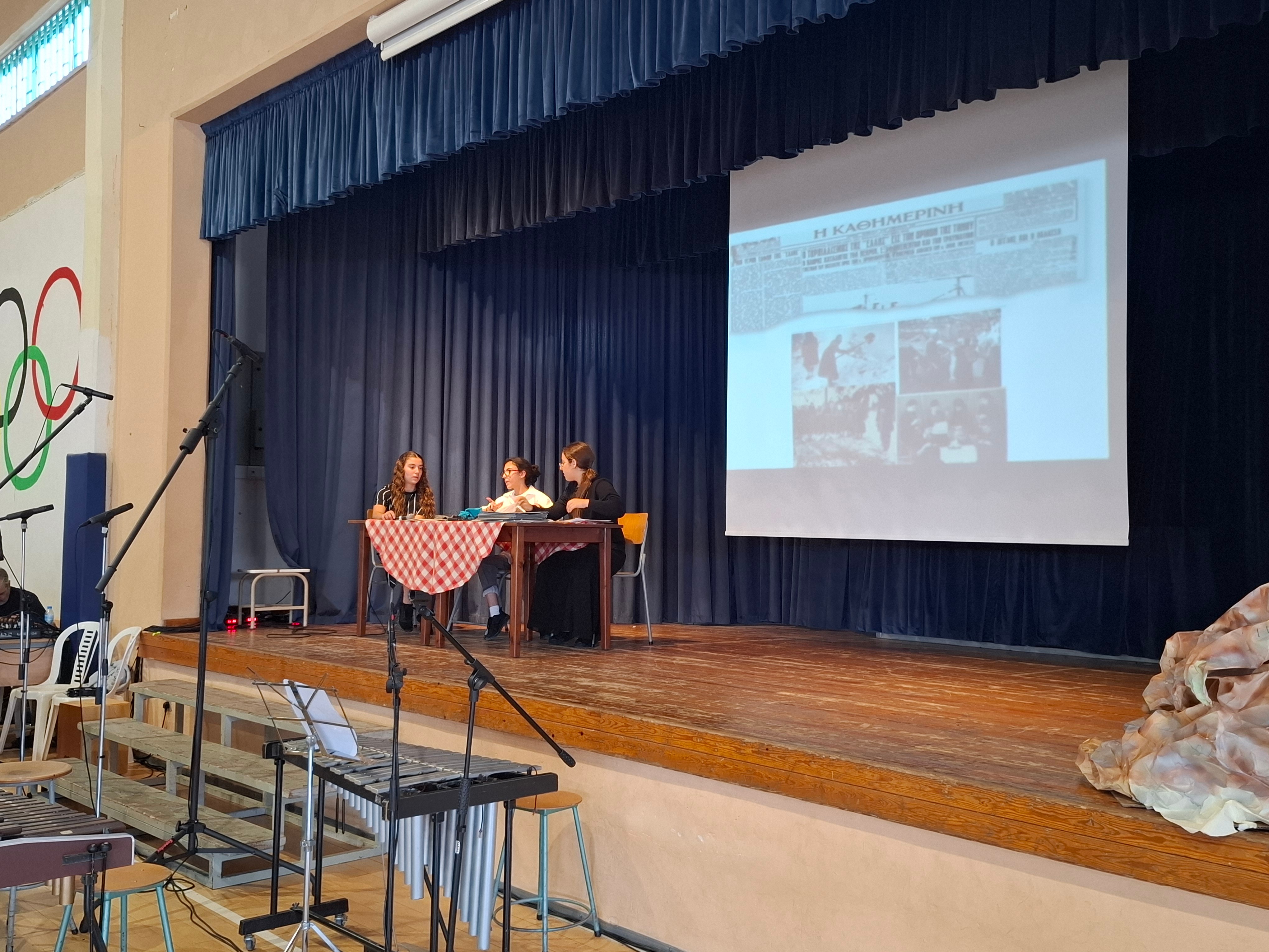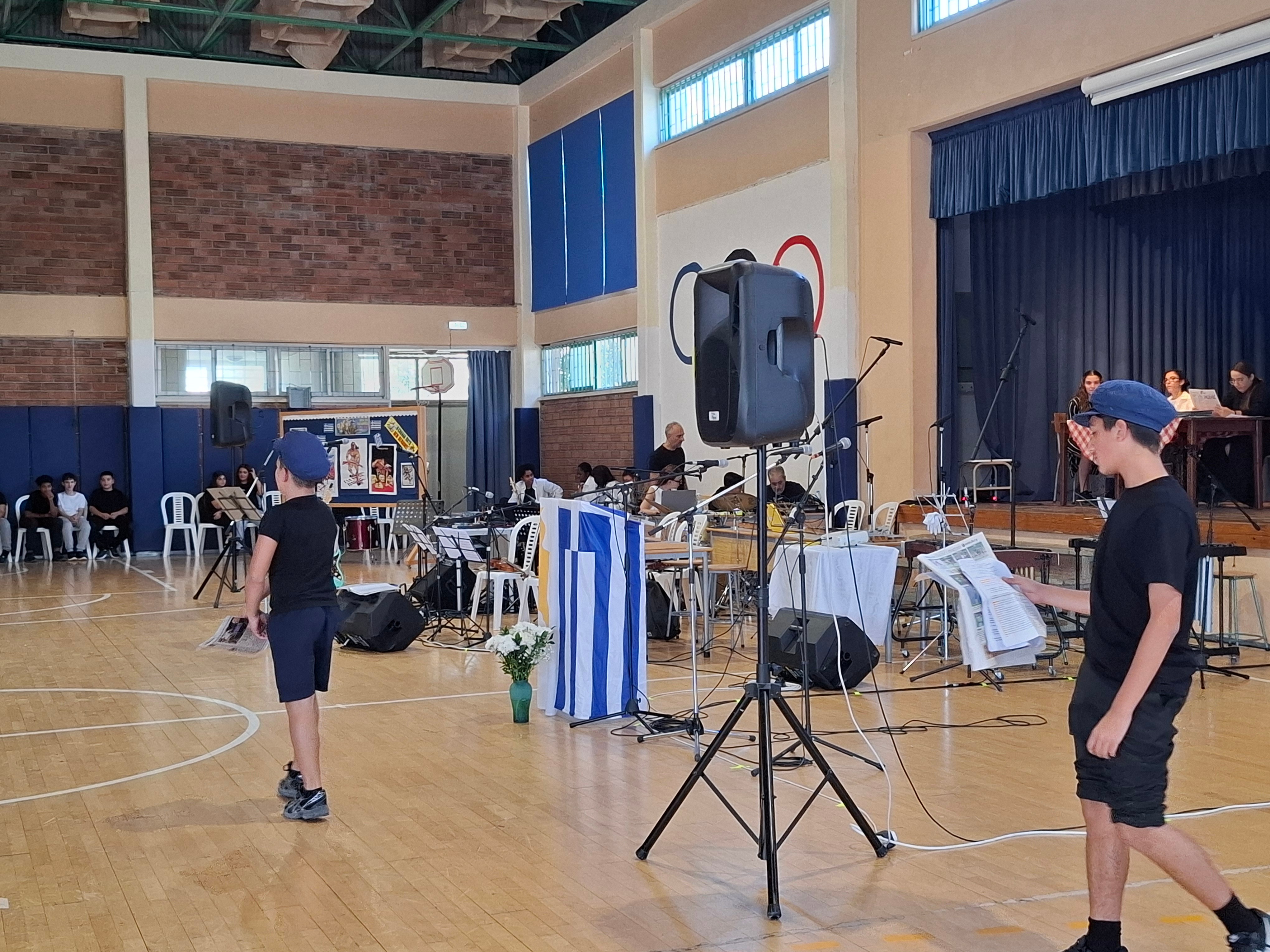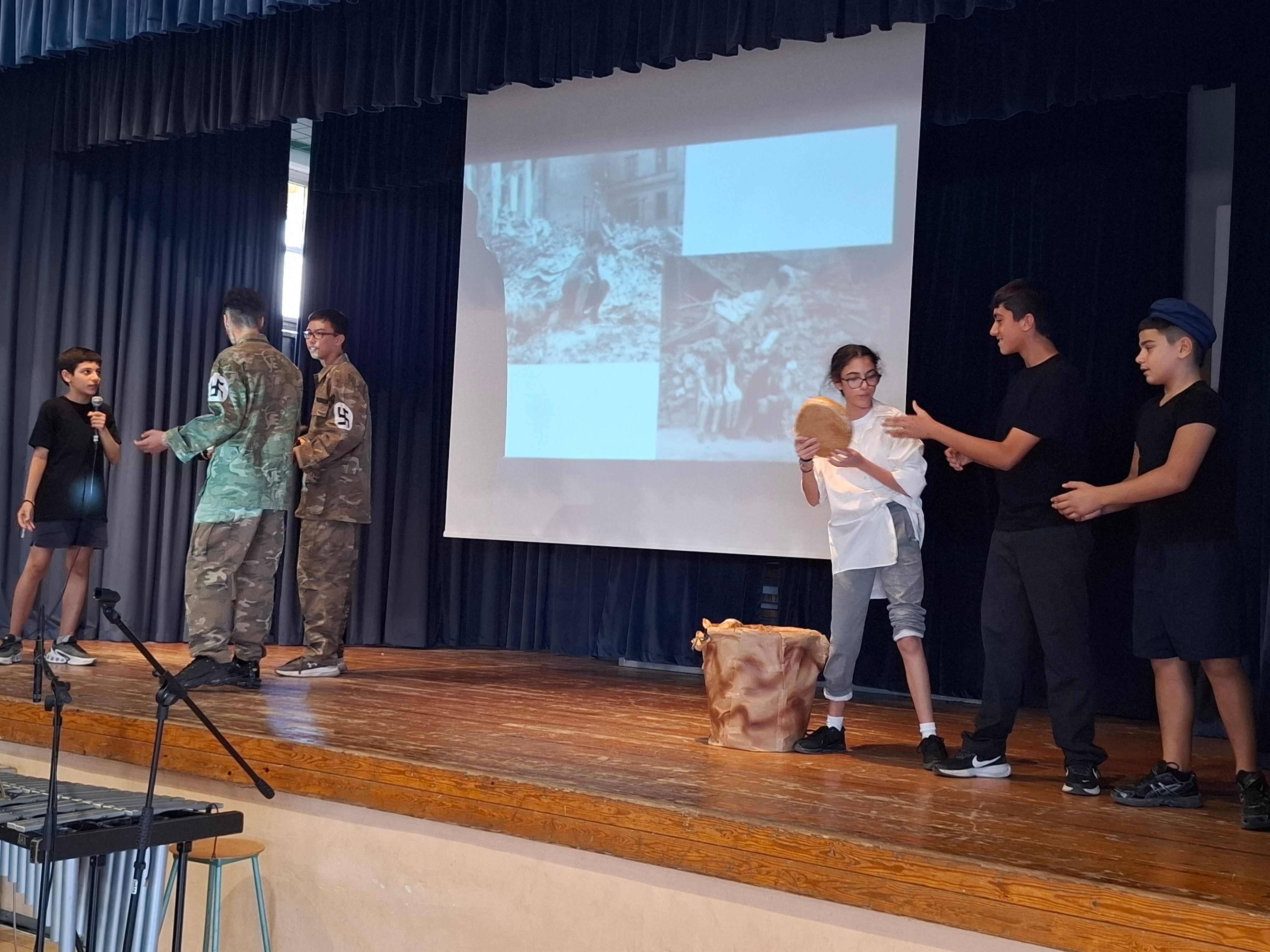 Ο ελληνικός λαός αγωνίστηκε γενναία για την ειρήνη, τη δημοκρατία και την ανεξαρτησία των λαών. Ας μας οδηγήσει το παράδειγμα αυτό ως μια φωτεινή ηλιαχτίδα στο σκοτάδι, στον αγώνα κατά της βίας του πολέμου και της προσβολής της ανθρώπινης αξιοπρέπειας. Για να περάσει το μήνυμα αυτό συνεργάστηκαν με ενθουσιασμό μαθητές και μαθήτριες, παρουσιάζοντας ελληνικούς χορούς, τραγούδια, ποιήματα και σκηνές από τον πόλεμο και τον αγώνα των Ελλήνων.