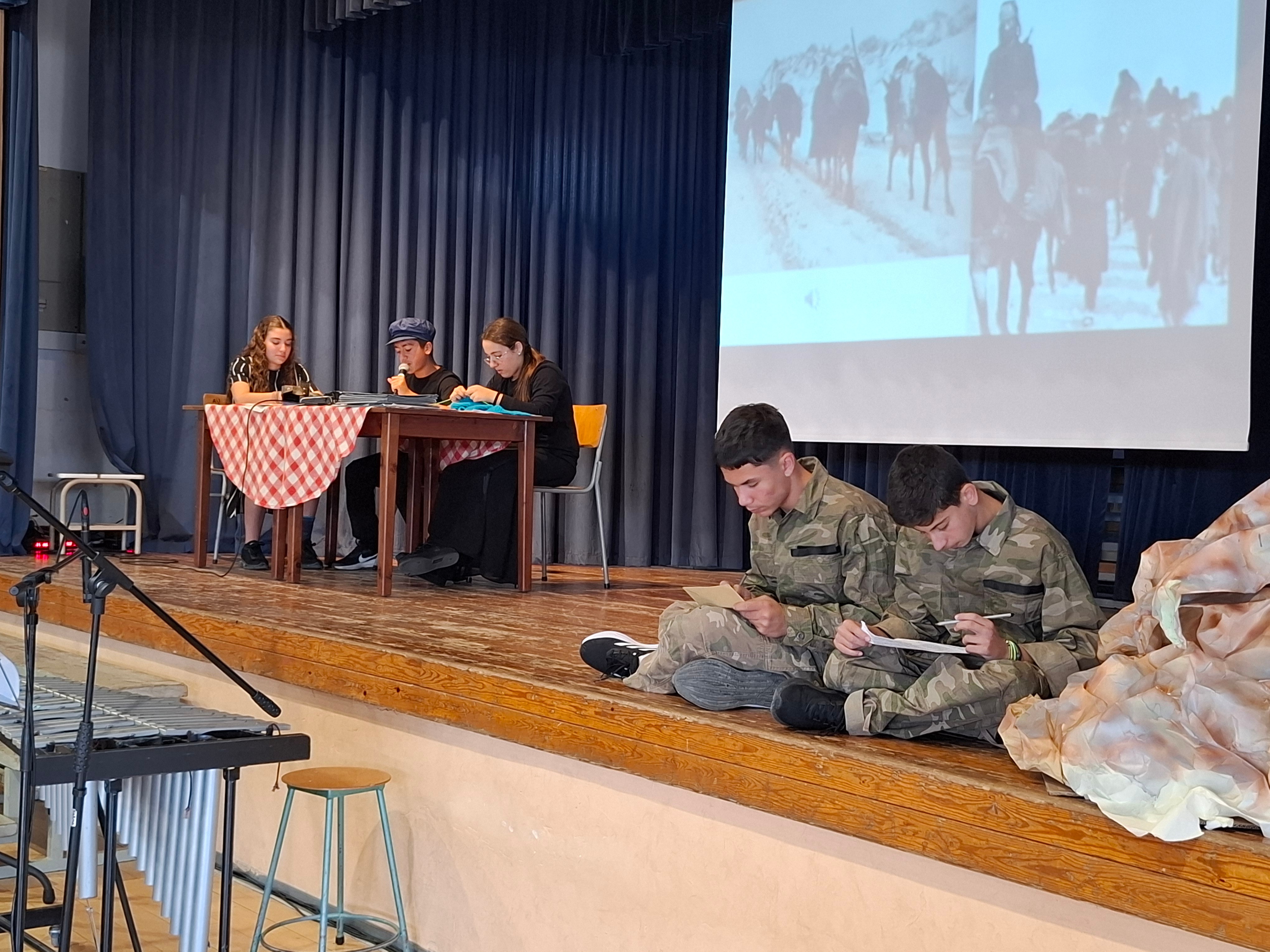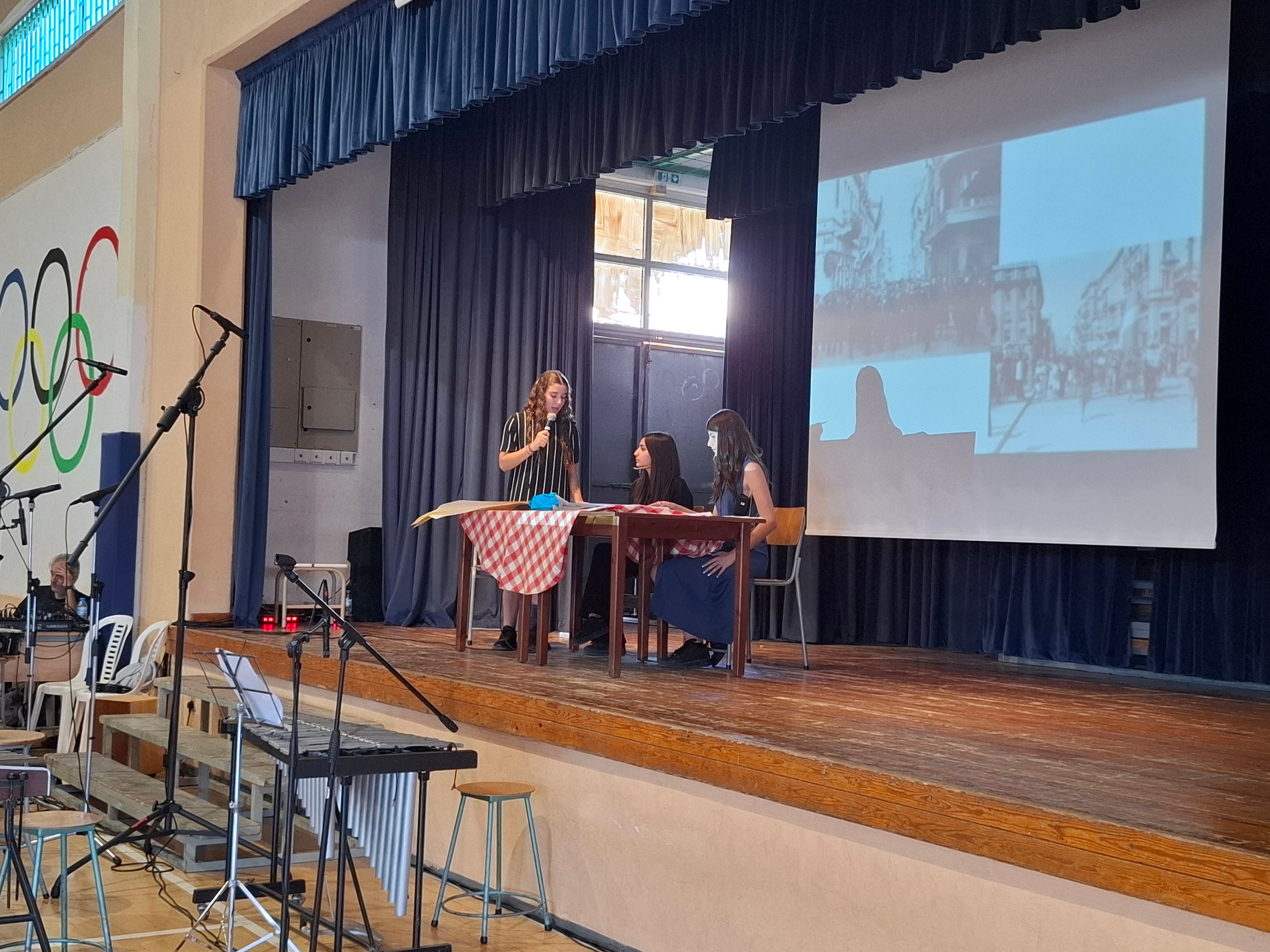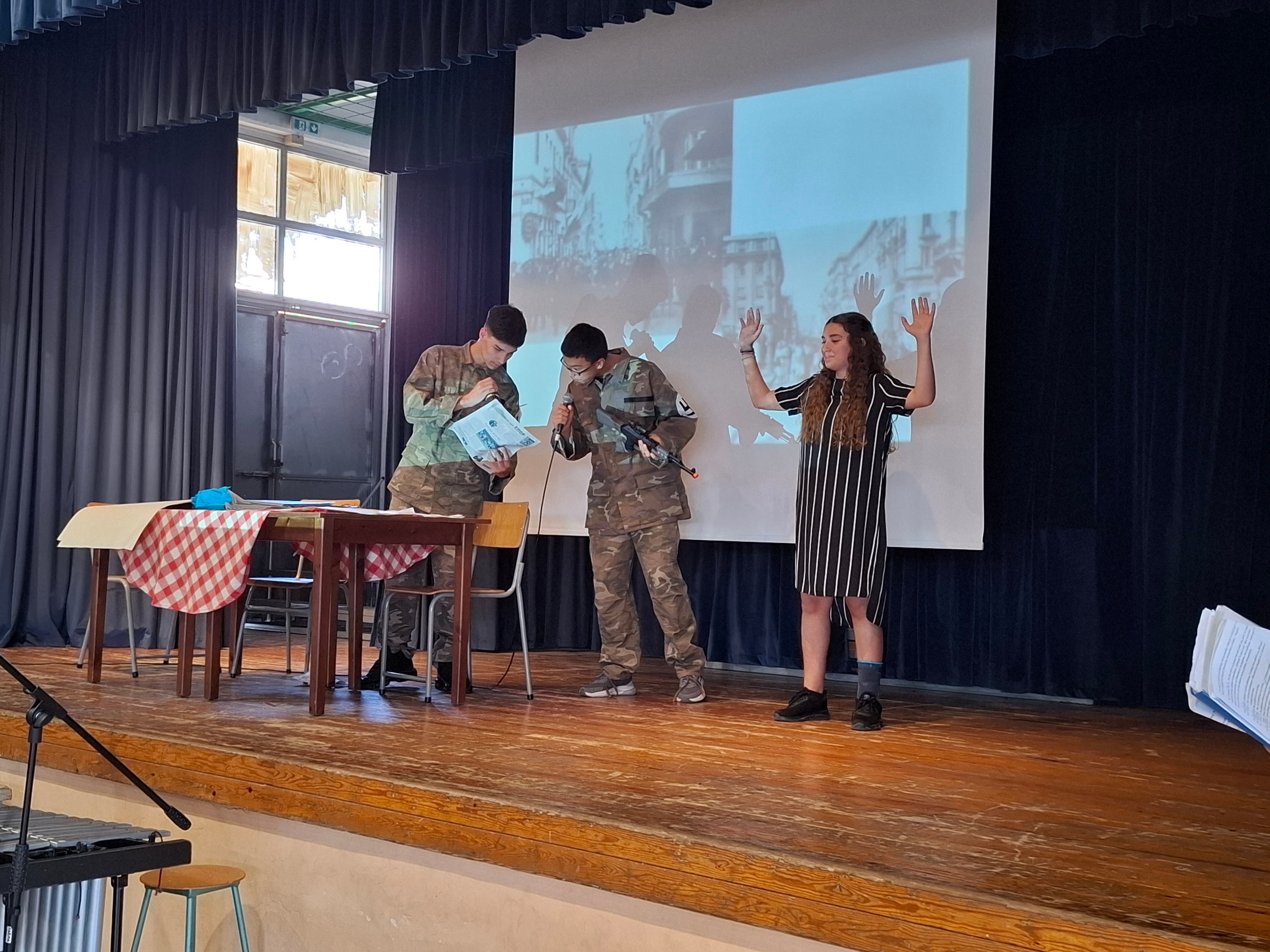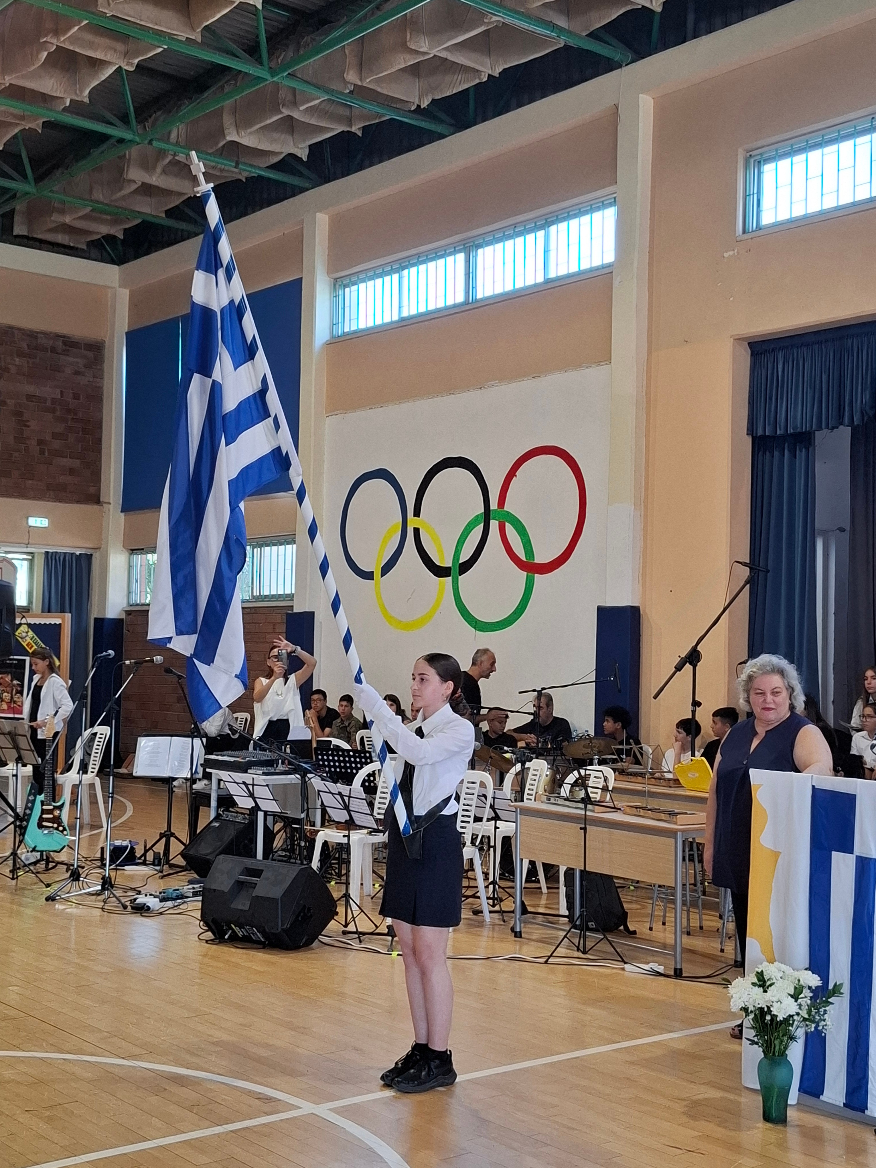 Ο ελληνικός λαός αγωνίστηκε γενναία για την ειρήνη, τη δημοκρατία και την ανεξαρτησία των λαών. Ας μας οδηγήσει το παράδειγμα αυτό ως μια φωτεινή ηλιαχτίδα στο σκοτάδι, στον αγώνα κατά της βίας του πολέμου και της προσβολής της ανθρώπινης αξιοπρέπειας. Για να περάσει το μήνυμα αυτό συνεργάστηκαν με ενθουσιασμό μαθητές και μαθήτριες, παρουσιάζοντας ελληνικούς χορούς, τραγούδια, ποιήματα και σκηνές από τον πόλεμο και τον αγώνα των Ελλήνων.