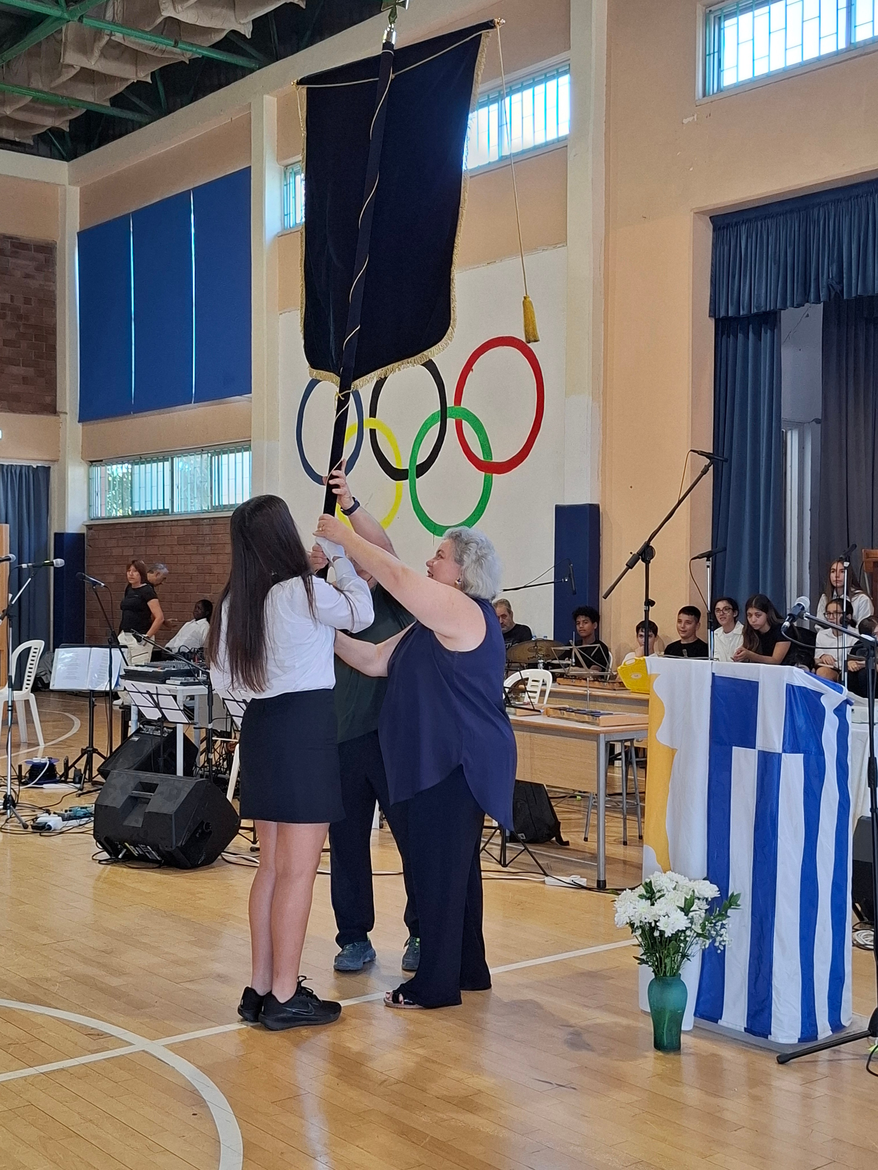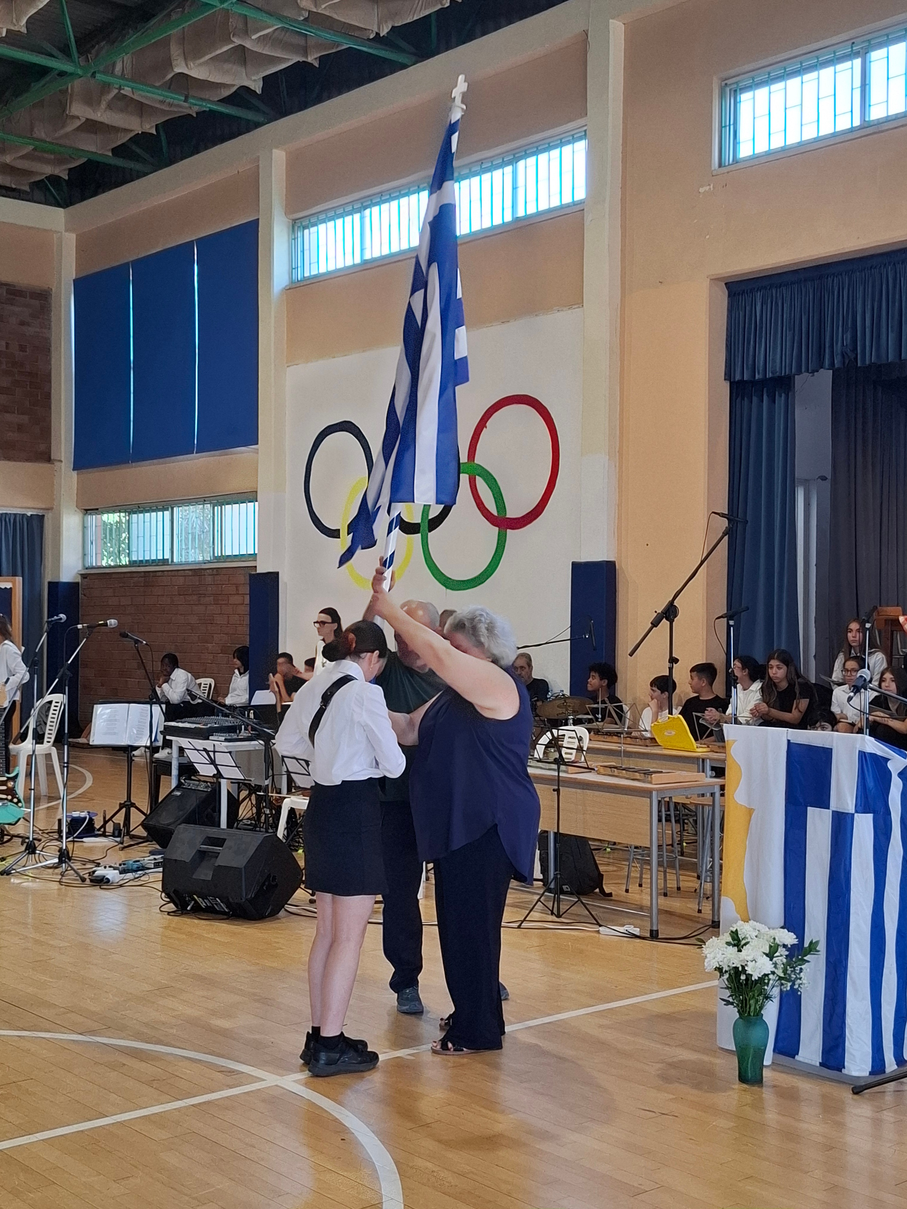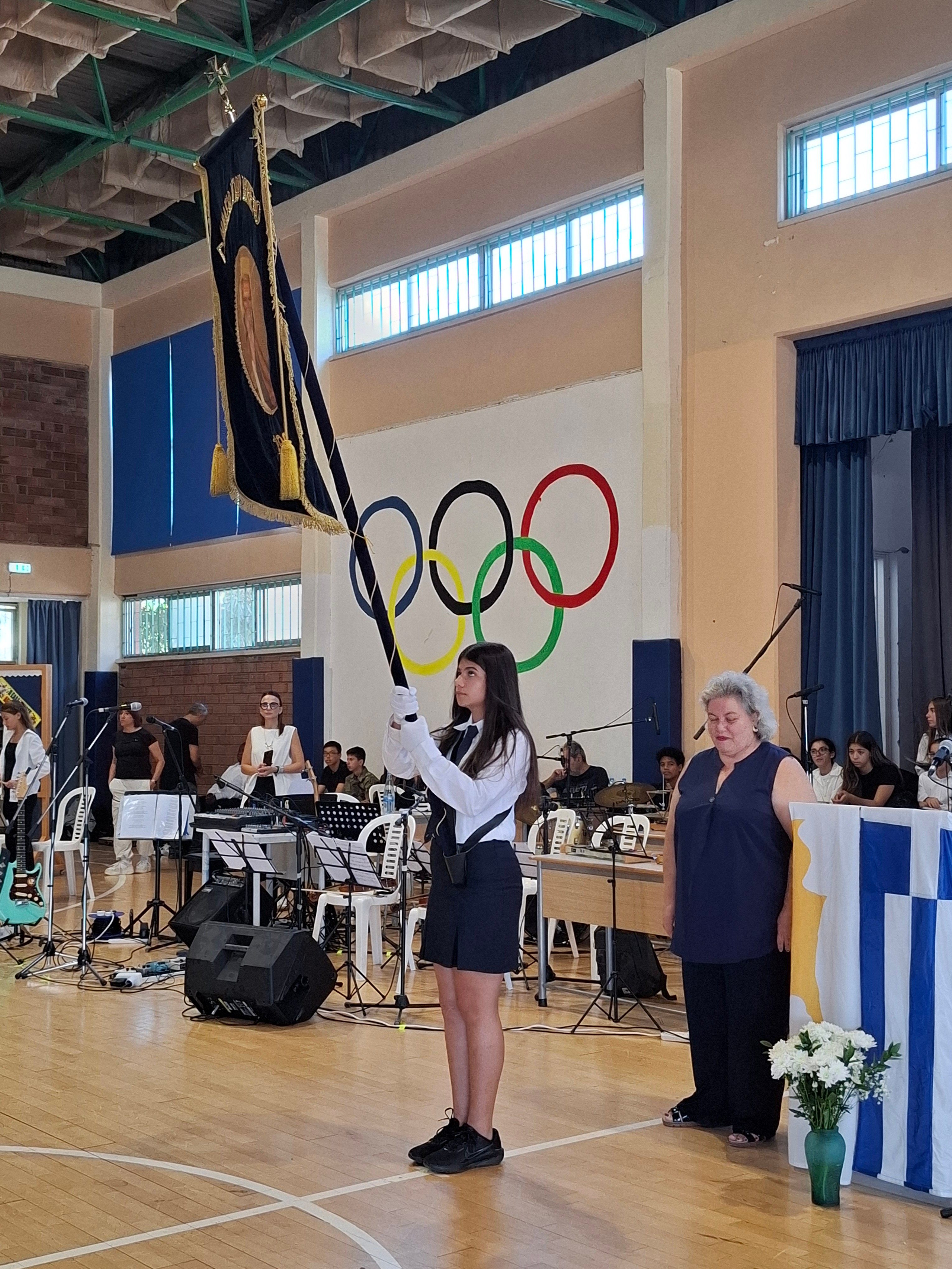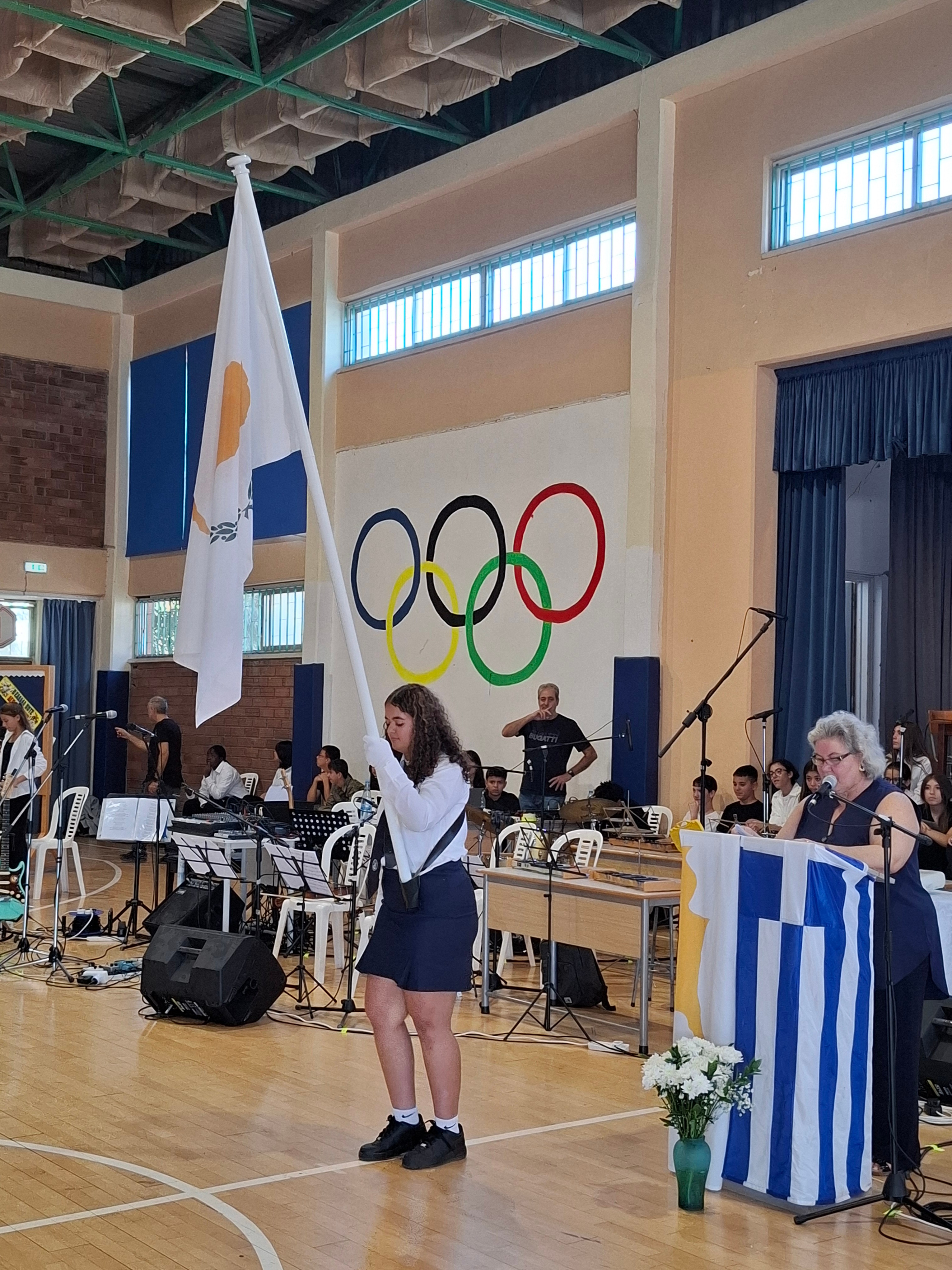Στην εκδήλωση, μέσα στο πλαίσιο της καθιερωμένης Γιορτής της Σημαίας τιμήθηκαν επίσης οι άριστοι σε ήθος και επίδοση μαθητές και μαθήτριες του Γυμνασίου μας με την ανακήρυξη της Λαβαροφόρου, των Σημαιοφόρων και των Παραστατών. Το Λάβαρο και οι Σημαίες παραδόθηκαν από τη Διευθύντρια του Γυμνασίου, κ. Λευκή Χατζητοφή. Στη συνέχεια το κοινό παρακολούθησε με ευλάβεια την ορκωμοσία και την περιφορά των σημαιών.